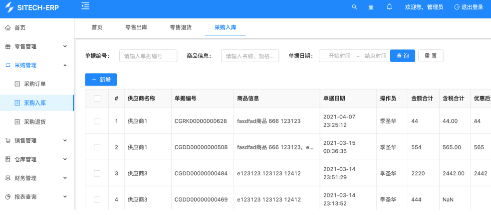 采购管理模块主要是对企业的采购、供应商、材料进行管理,它包括了采购订单、采购入库、采购退货等方面的功能。