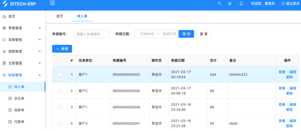 对于ERP系统来说,财务管理是ERP的核心,在财务管理模块,可以查看到企业内所有的收支往来。它包括了收入单、支出单、收款单、付款单等功能,并且可生成可视化报表,助力企业管理者清晰、高效的进行管理。